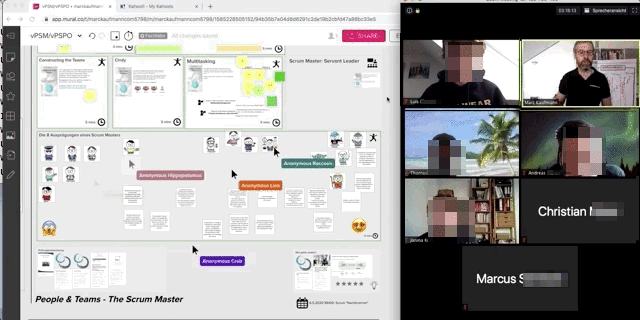 Wir trainieren mit Zoom und Mural. Beide Werkzeuge sind einfach zu erlernen und laufen in jedem modernen Internetbrowser. Wir empfehlen dazu eine aktuelle Version von Chrome oder Firefox.